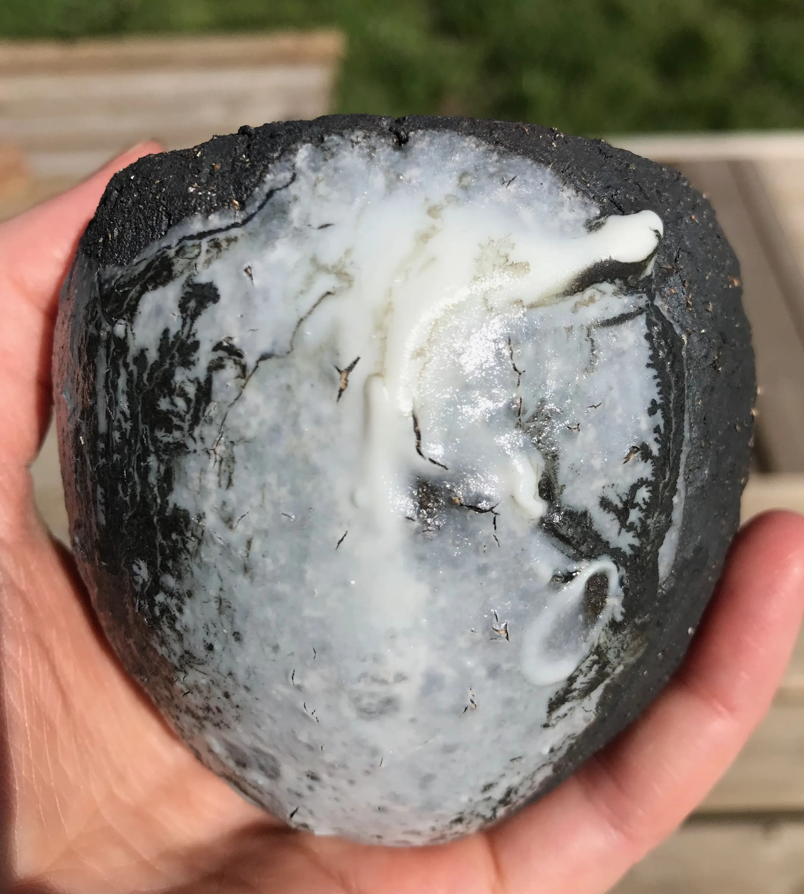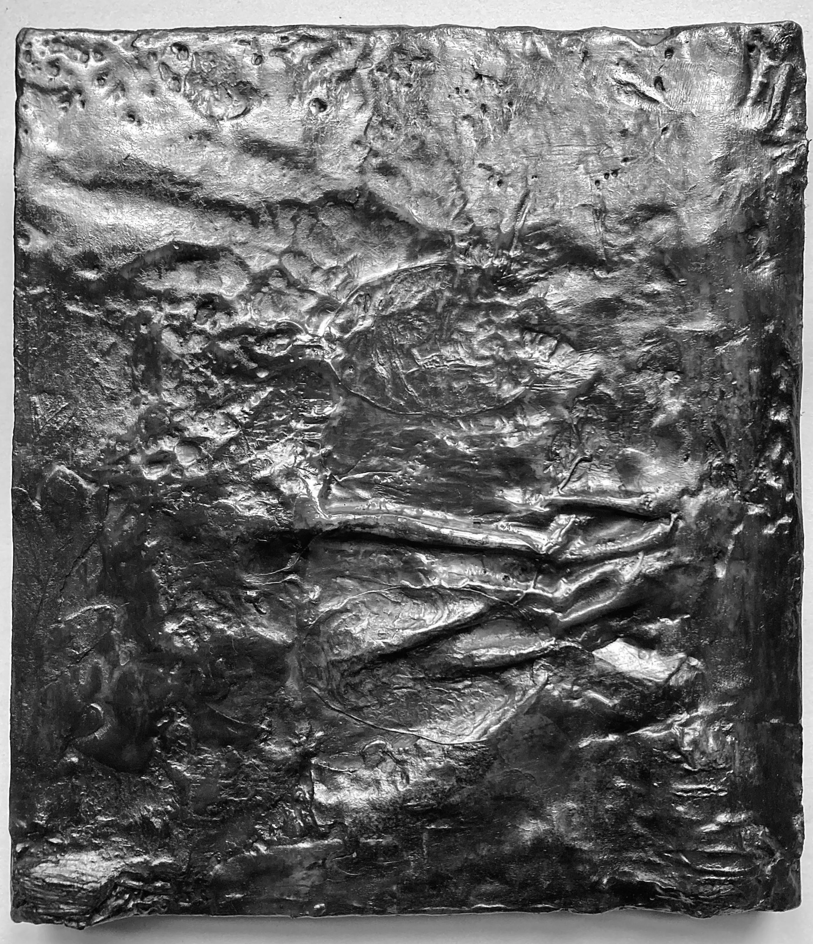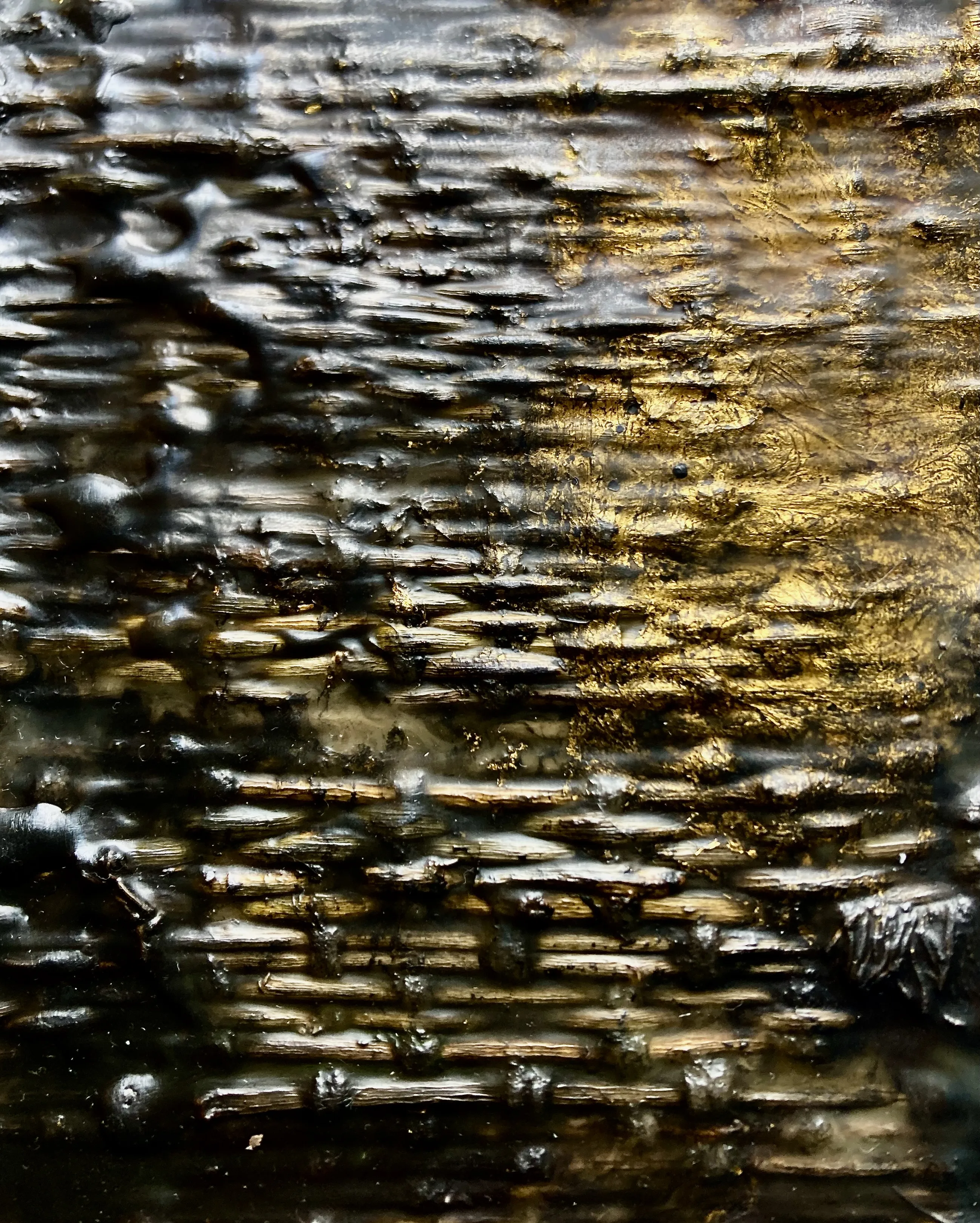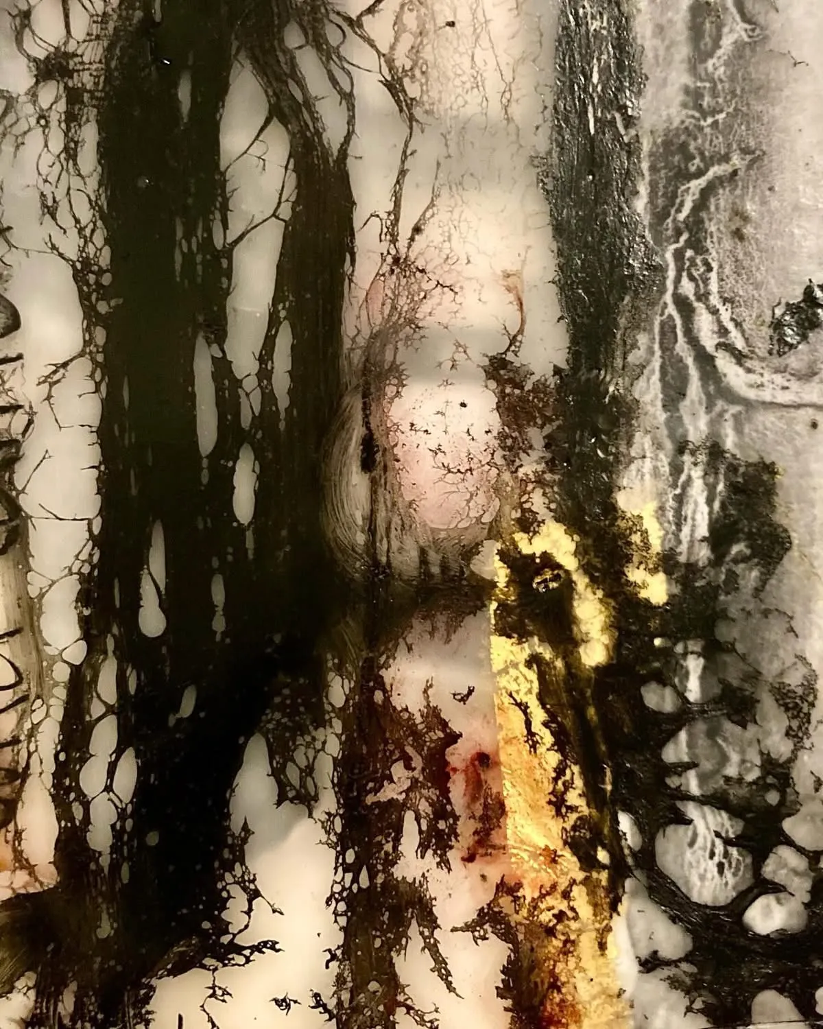 Recently, her encaustic works have adopted a slower, more contemplative process. Natural objects are encased and layered within wax and polished graphite, resulting in haunting, intricate pieces that speak of memory, preservation, loss, and time.